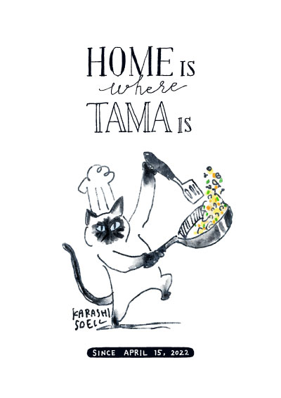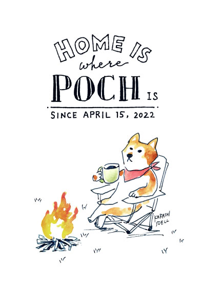イラストにはタイトル文字が入り、3種類からデザインを選ぶことができます。 「POCH」の部分にアニマルさんのお名前が入り、「ポチがいるところが家」という文章です。
